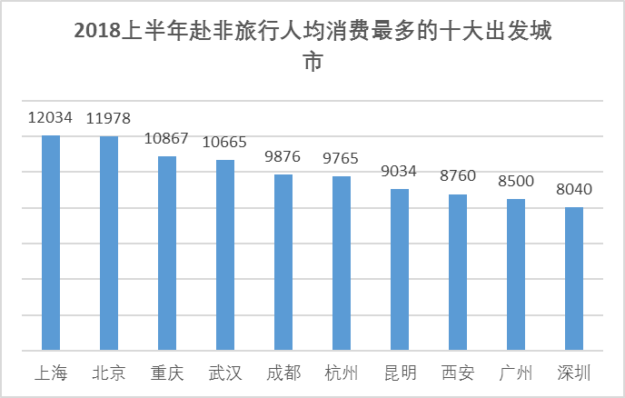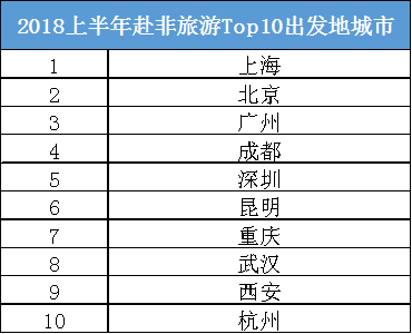 北上广是赴非旅游排名前三位的客源城市。根据携程平台订单数据,成都、深圳、昆明、重庆、武汉、西安、杭州也入围出发地城市TOP10榜单。二三线城市居民赴非旅游的热情持续攀升,增长最快的前10名城市分别是南京、常熟、长沙、南昌、郑州、哈尔滨、苏州、福州、大连、厦门。